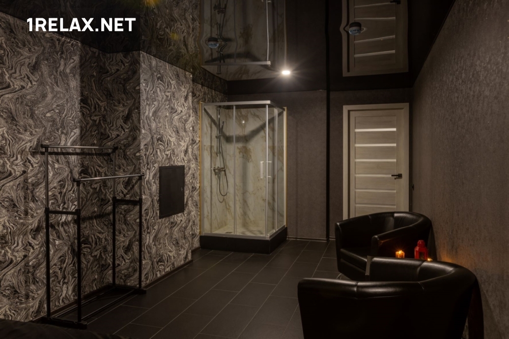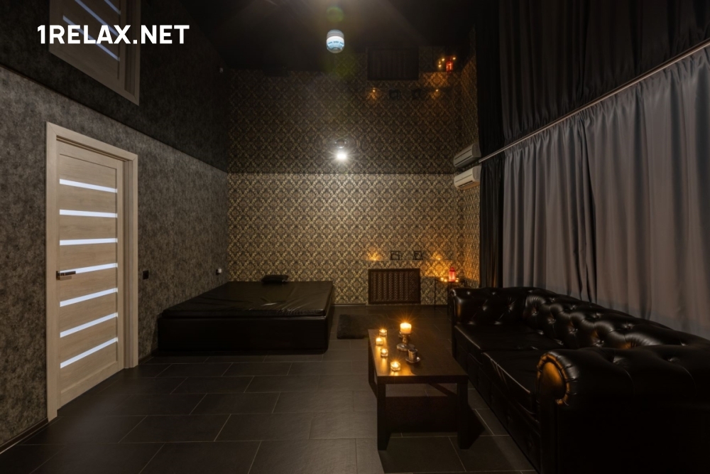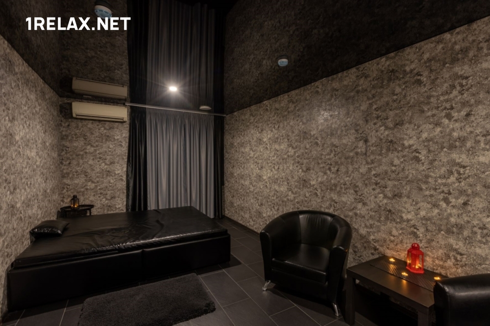 В заведении пять комнат, с первой минуты покоряющих шикарным стильным интерьером. Глубокий черный цвет отделки и мебели позволяет отрешиться от визуальных раздражителей и полностью отдаться удовольствию.